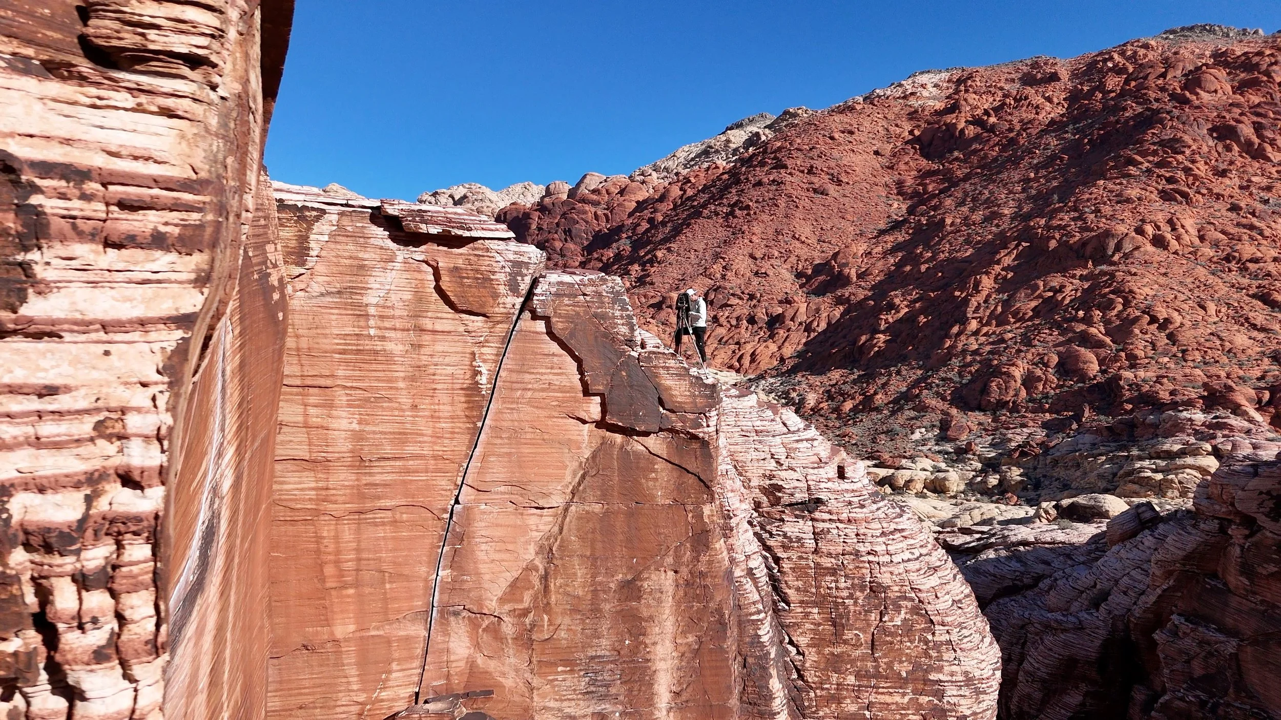 March 2026 | Bobby Photographed the Wall on 4x5 Film from two vantage points - here standing cliffside atop the Atman Trad Route as well as hanging his 4x5 from trad gear from a lower vantage point above the beginning of the route.